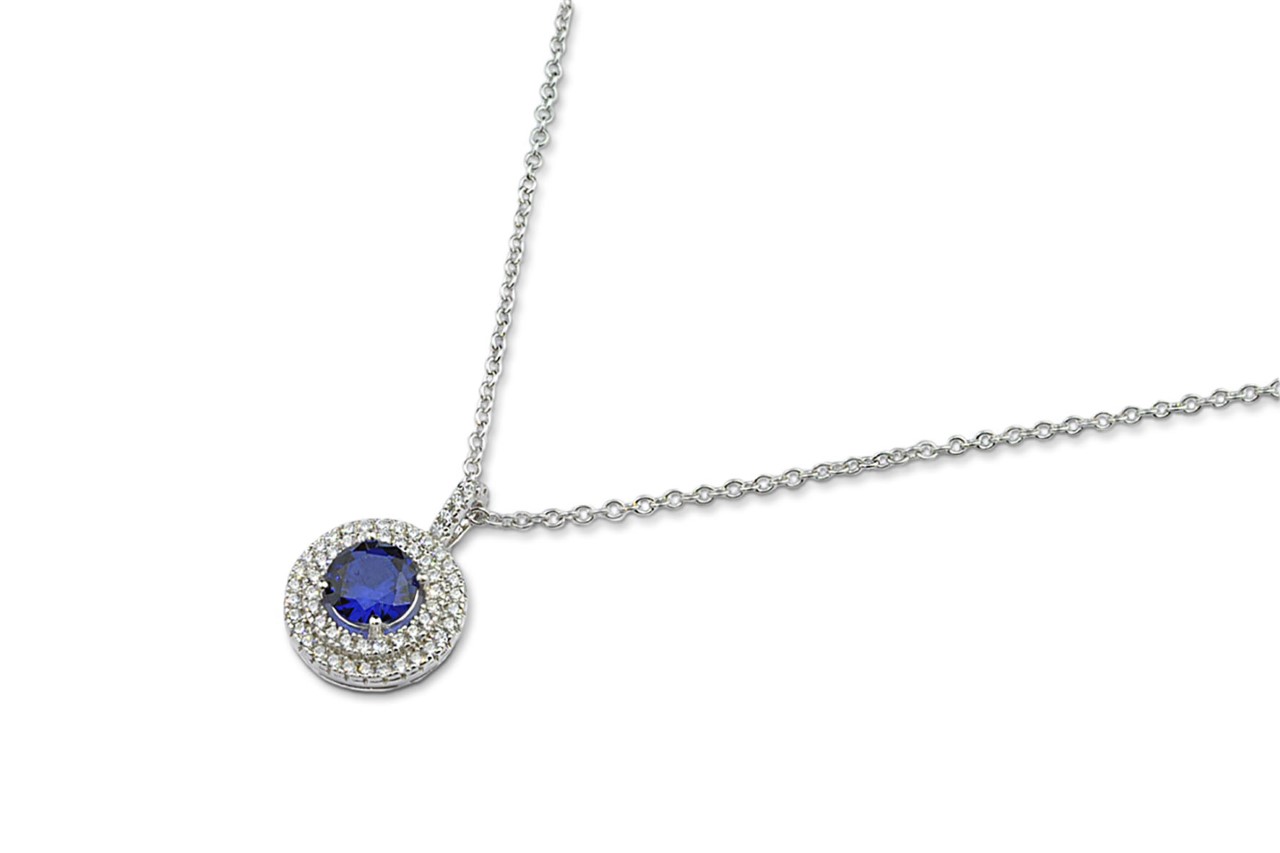 Collana Mabina con ciondolo, con zirconi e zaffiro blu sintetico. Ideale per essere indossato sia quotidianamente che per occasioni particolari con un look elegante e raffinato.